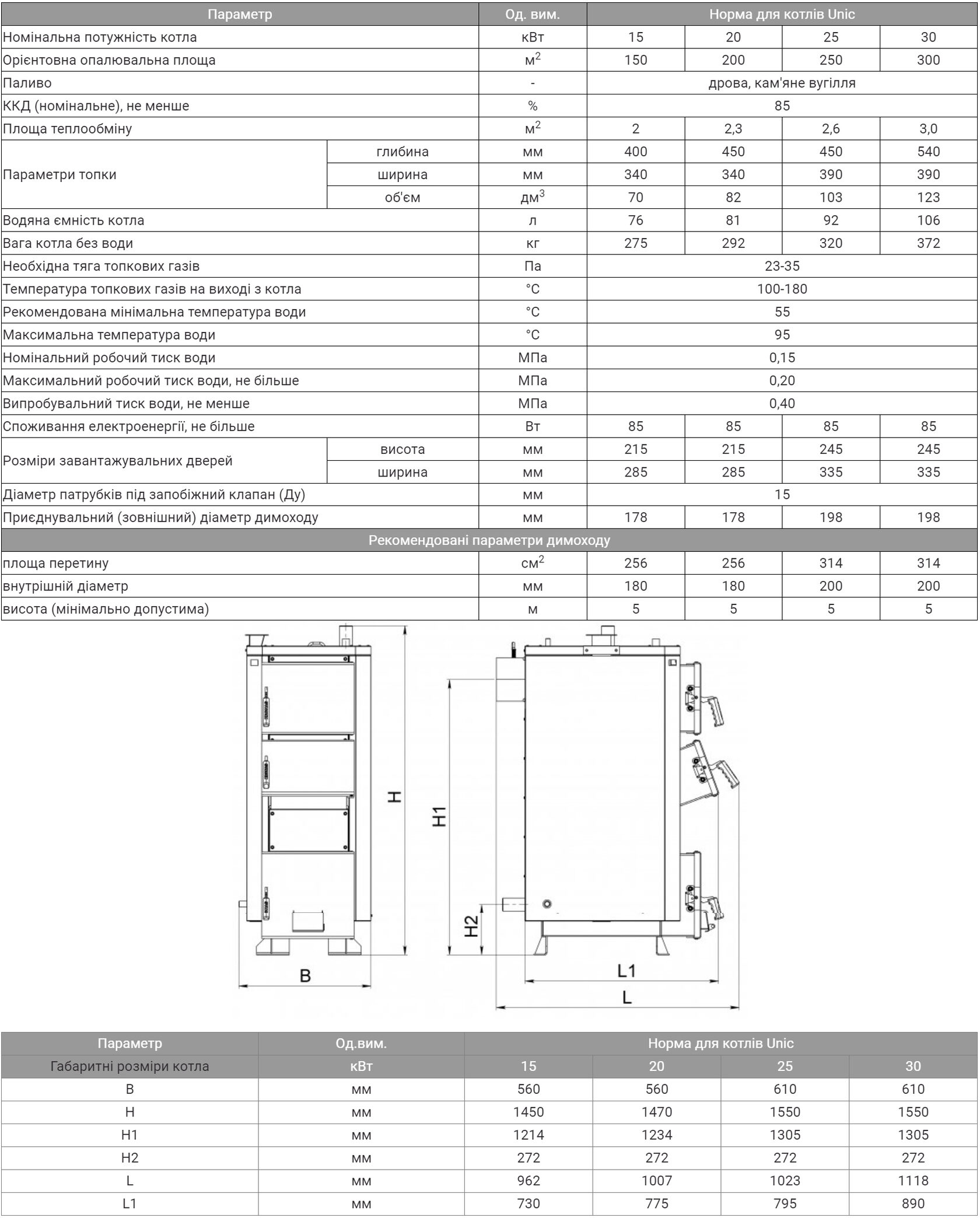 Твердопаливні котли серії KRONAS UNIC випускаються в діапазоні від 15 до 30 кВт та розраховані на опалення будинків площею до 300 кв.м. Паливом для котла є деревина будь-якої породи, паливні брикети та кам'яне вугілля. Котли цієї серії випускаються із «перекидним» димоходом, тобто. вихід димоходу може бути спрямований горизонтально чи вертикально. Вертикальний вихід димоходу значно розширює можливості установки, оскільки вимагає менше відстані до задньої стінки.
