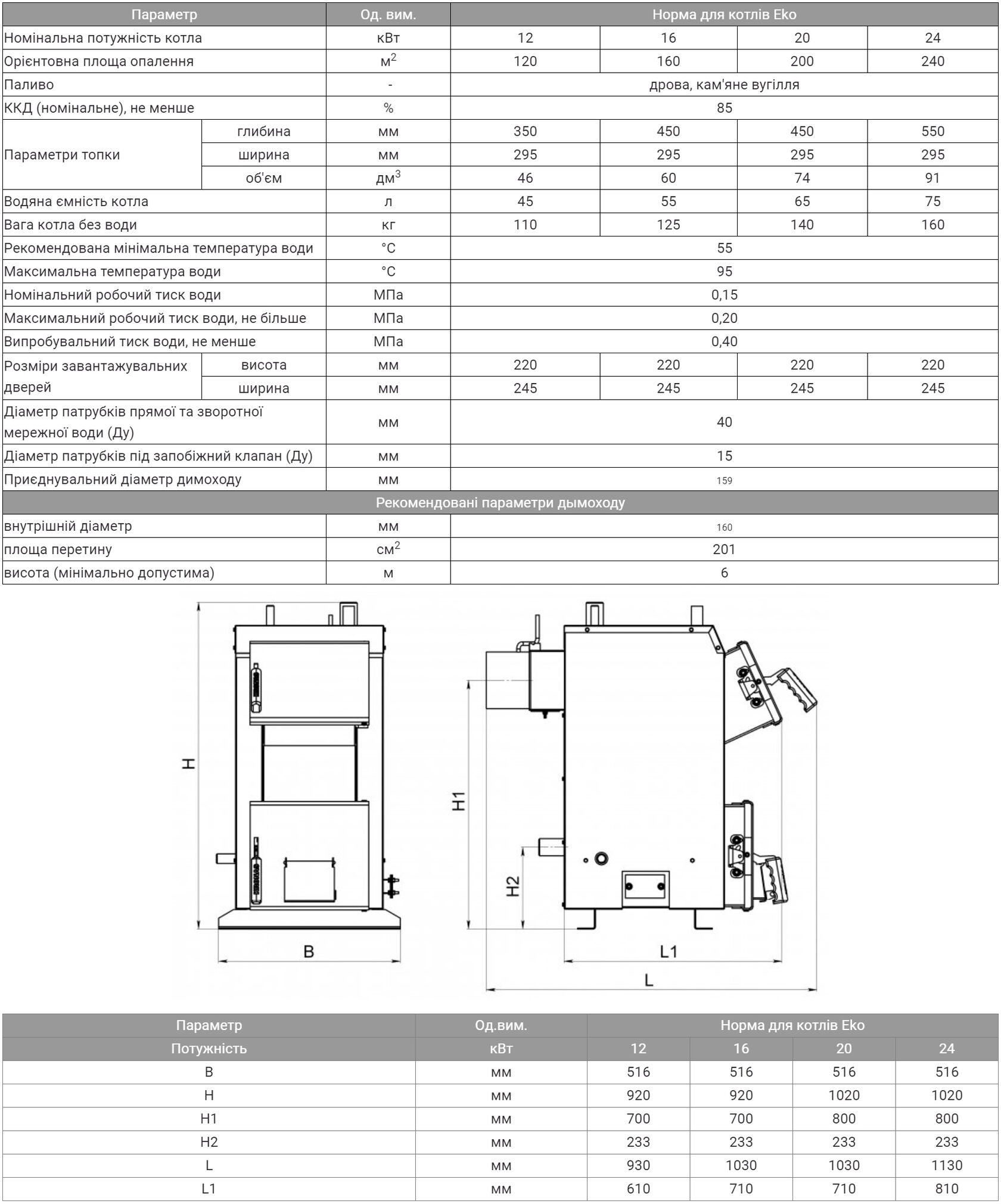 Твердопаливний котел KRONAS EKO та EKO Plus призначений для теплопостачання приміщень, оснащених системами водяного опалення будь-якого типу (відкритого чи закритого). Котел KRONAS EKO та EKO Plus працює на різних видах твердого палива (дрова, паливні брикети, кам'яне вугілля). У конструкції котла передбачено два варіанти управління: перший – за допомогою механічного регулятора тяги, другий – з підключенням блоку управління та вентилятора, що нагнітає. Котел EKO Plus комплектується блоком управління та вентилятором, що нагнітає.